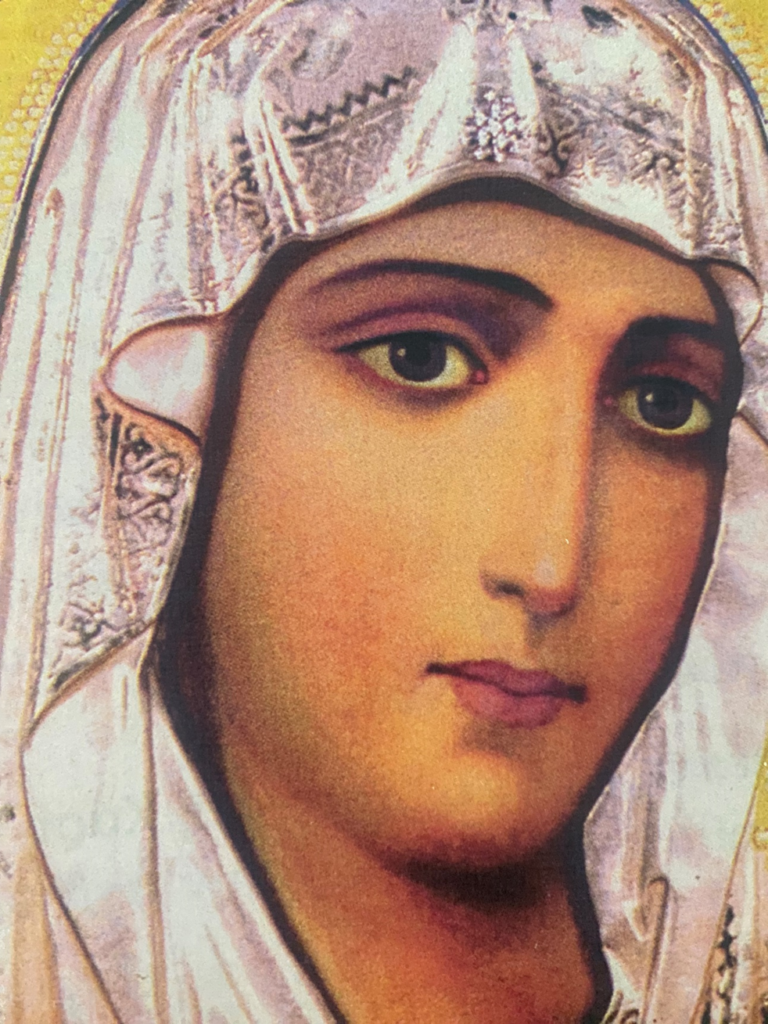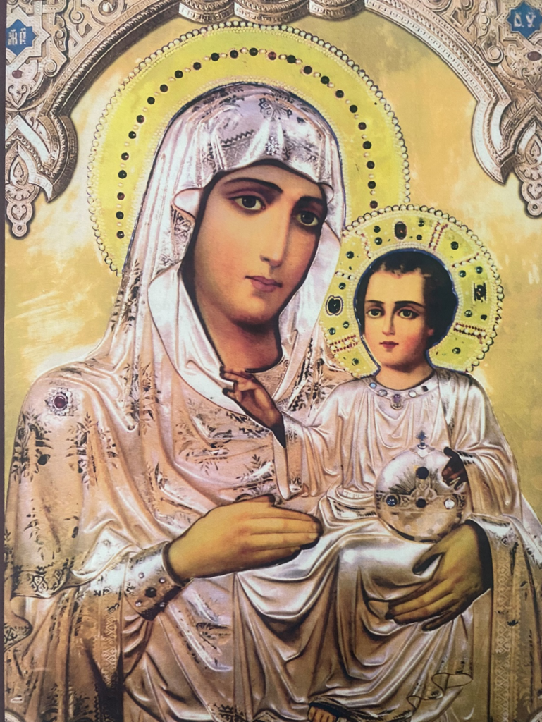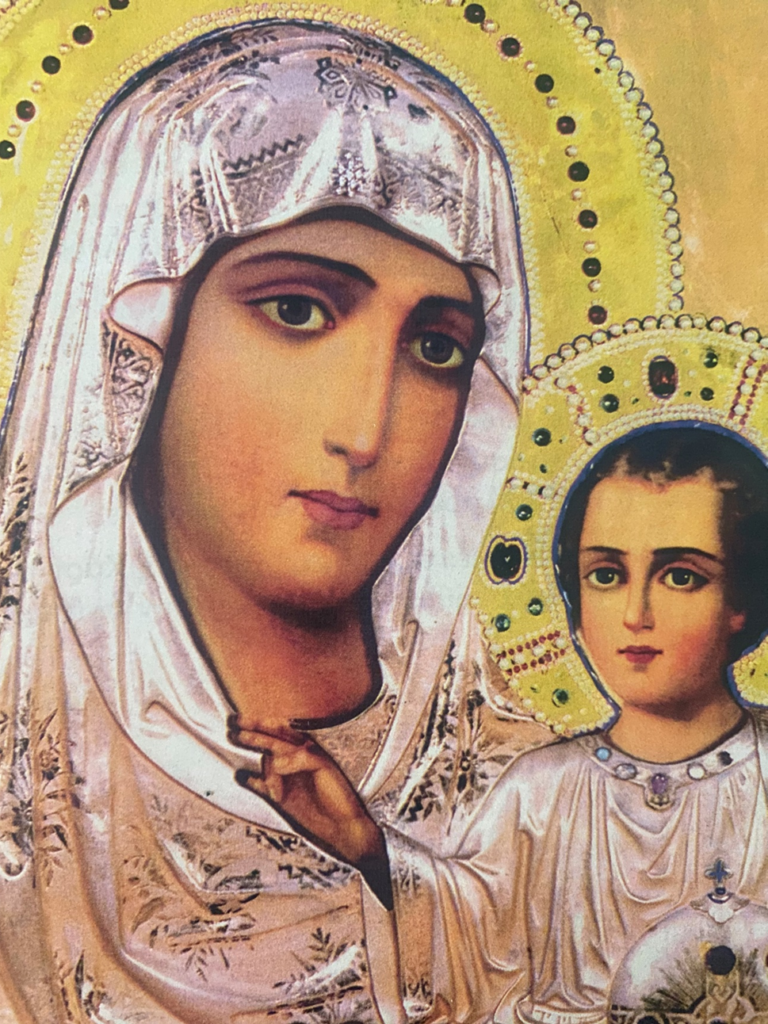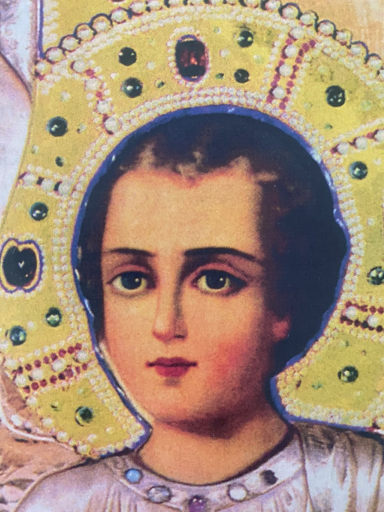 Detalhe do menino Jesus no colo de Panagia de Jerusalém – a mais bela