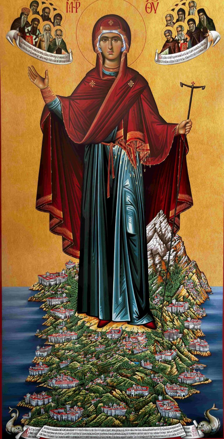 A Padroeira Celestial do Monte Athos, a Puríssima Mãe de Deus, era graciosamente disposta ao santo.